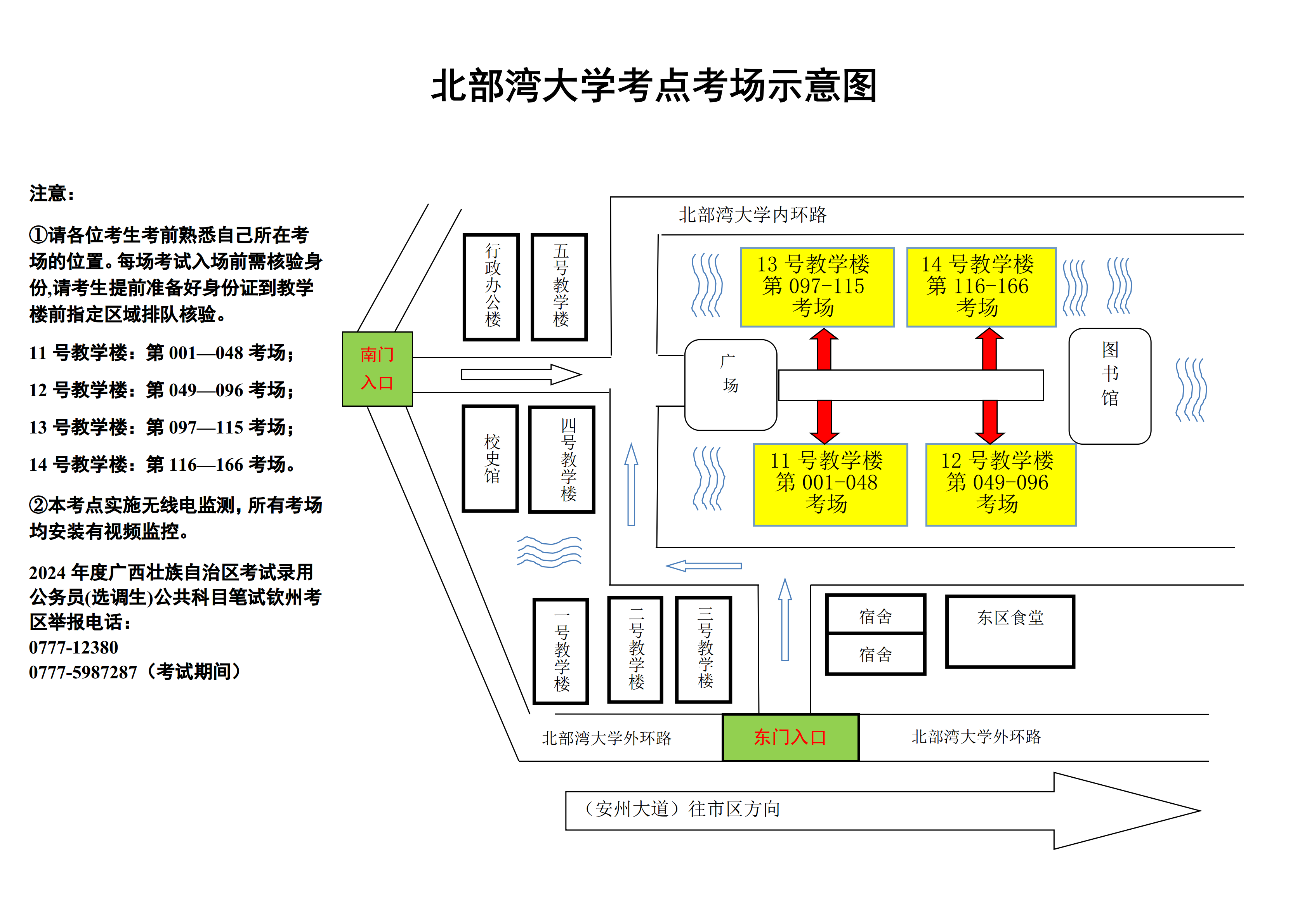 欽州考區(qū)共設(shè)兩個考點,分別為北部灣職業(yè)技術(shù)學??键c和北部灣大學考點。請核對好本人準考證上的考點,兩個考點離市區(qū)有一定距離,請關(guān)注當天天氣情況,充分考慮路途時間和天氣因素影響,每場考試前,提前60分鐘到達考點。(考點地址和具體考場安排請掃附后的二維碼查看)