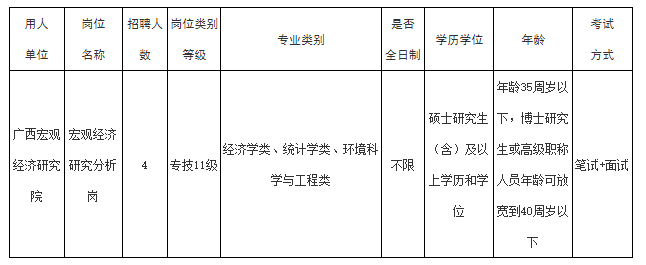 本次公開招聘實名編制工作人員4名,要求普通高等學(xué)校畢業(yè),經(jīng)濟學(xué)類、統(tǒng)計學(xué)類和環(huán)境科學(xué)與工程類專業(yè),具有碩士研究生(含)及以上學(xué)歷和學(xué)位,年齡35周歲以下(年齡截止報名首日),博士研究生或高級職稱人員年齡可放寬到40周歲以下(年齡截止報名首日)。
