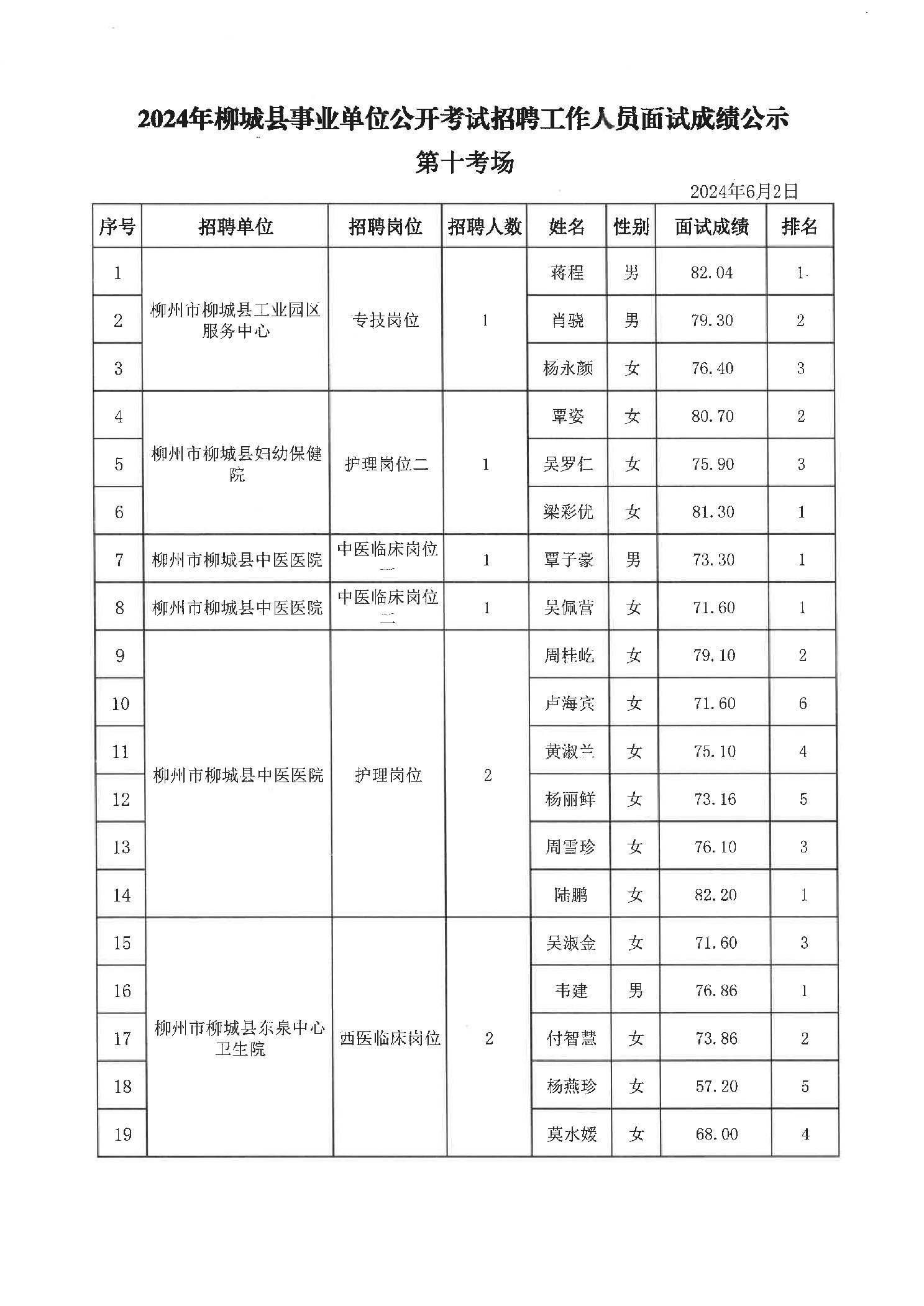 原文標題:2024年柳州市事業(yè)單位公開考試招聘工作人員面試成績公示(柳城縣崗位)