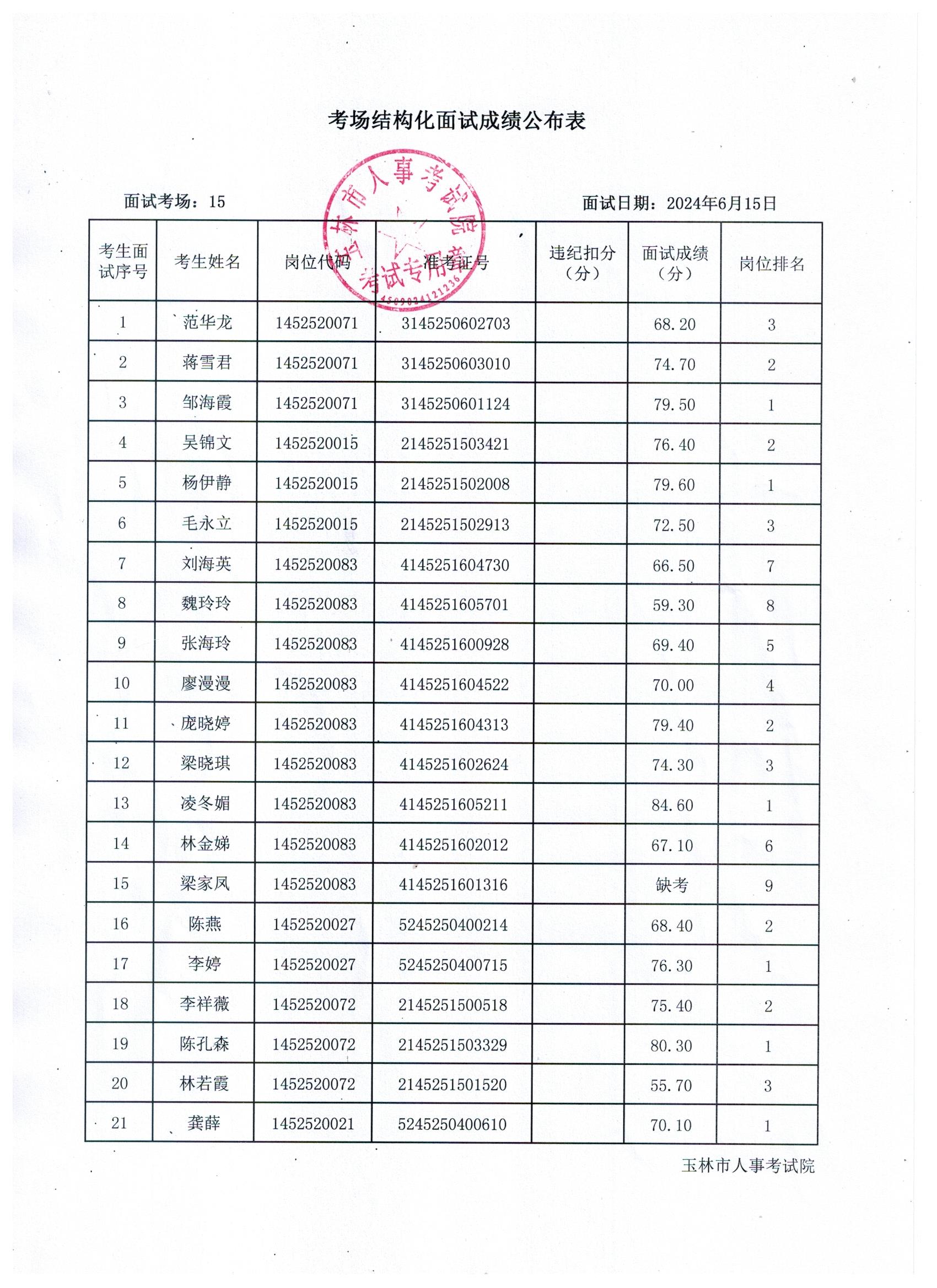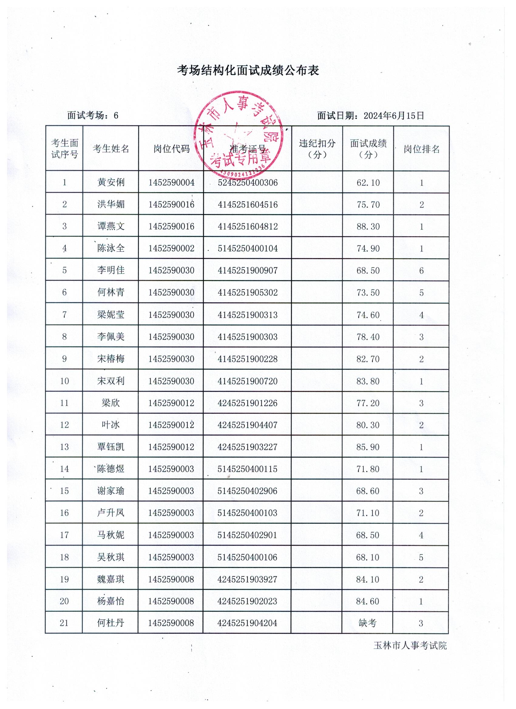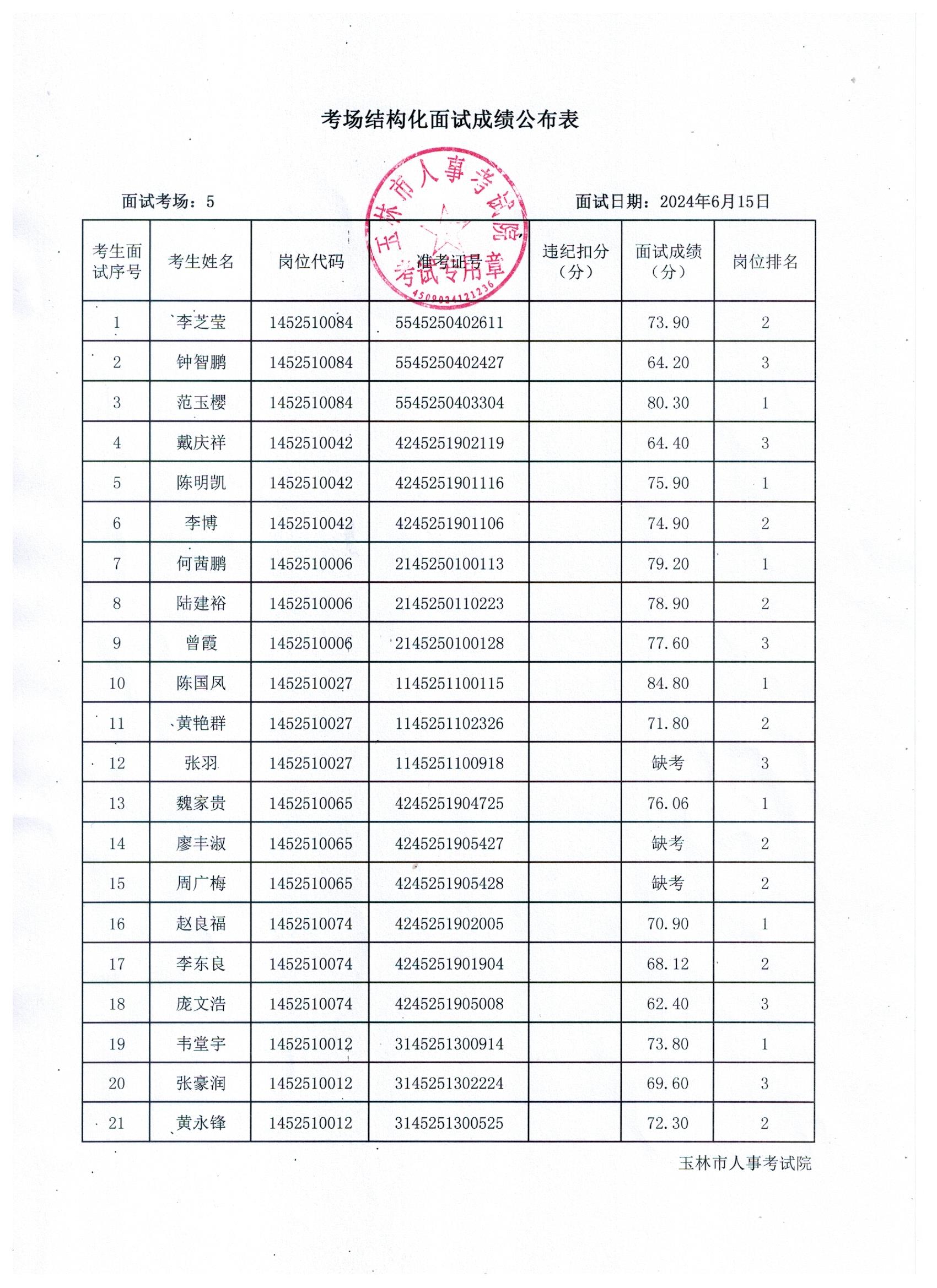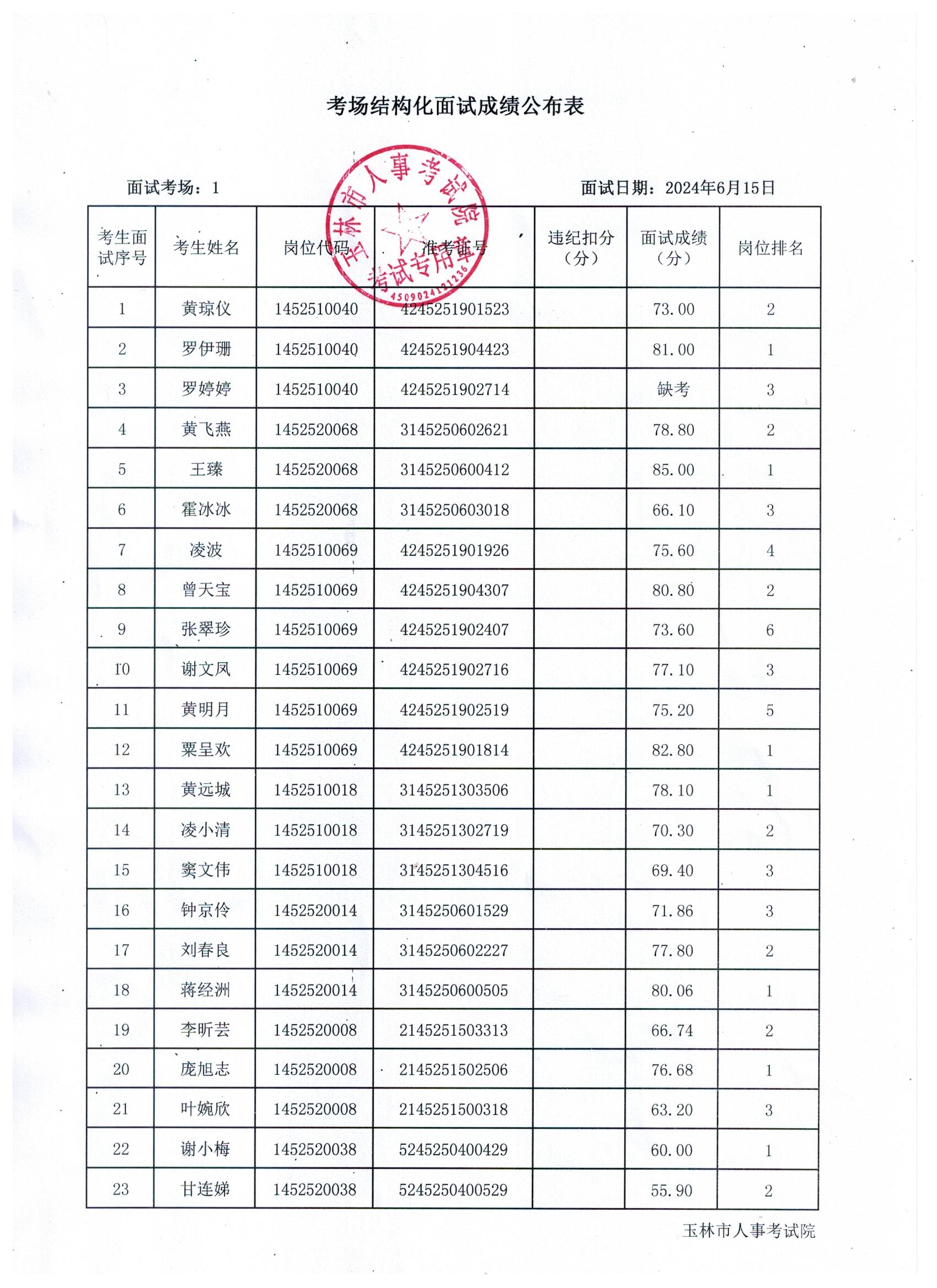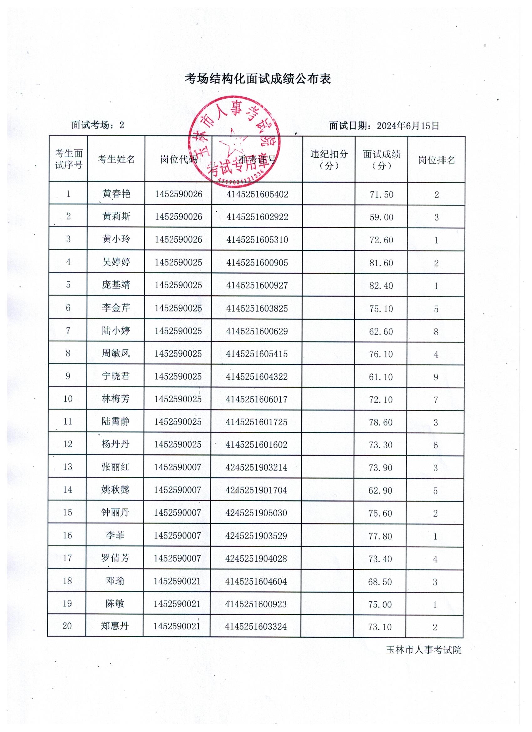 原文標(biāo)題:2024年玉林市直(含玉州區(qū)、福綿區(qū)、玉東新區(qū))事業(yè)單位公開招聘人員面試成績公布(6月15日)