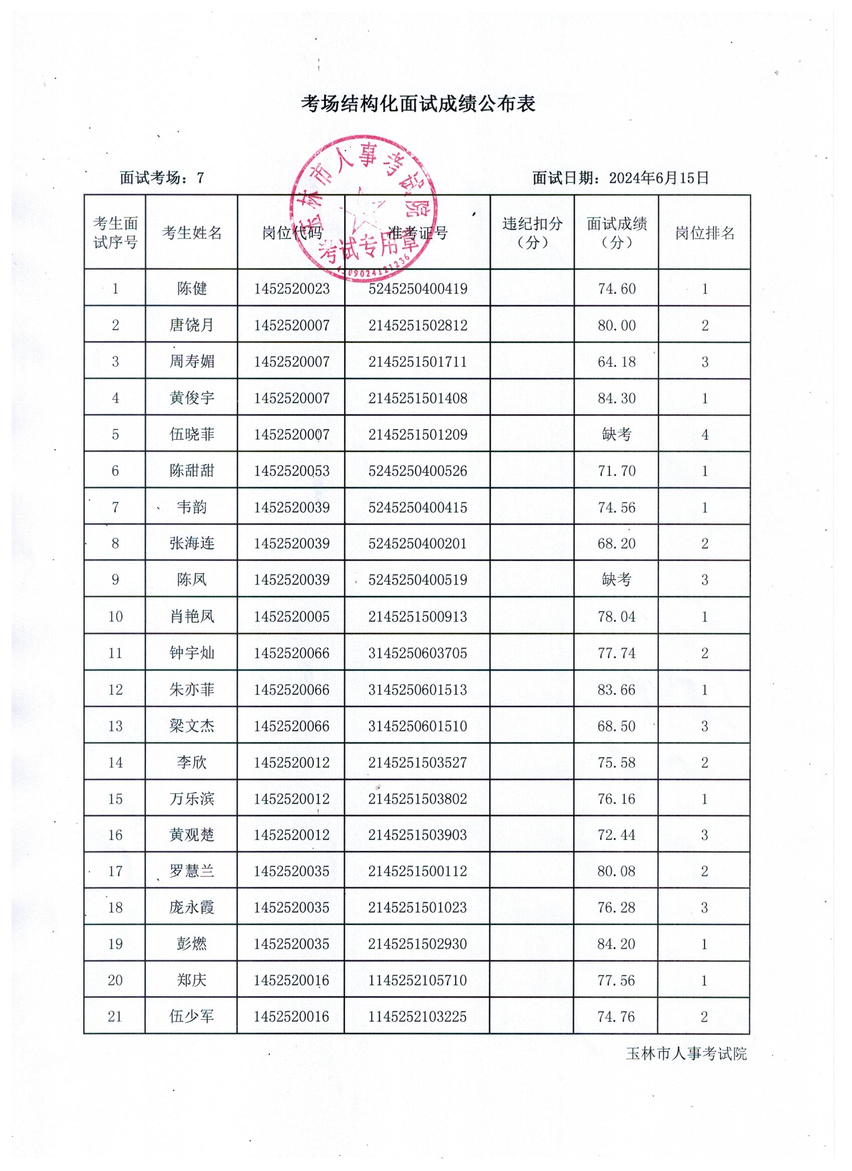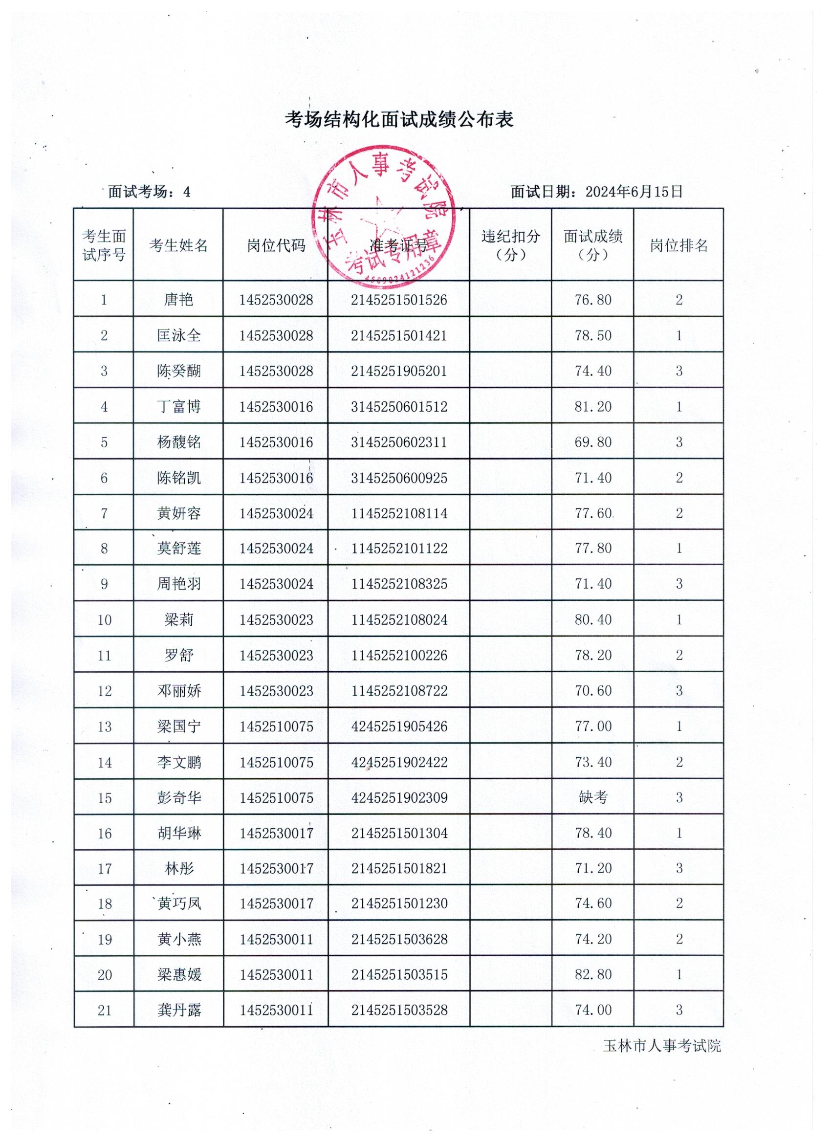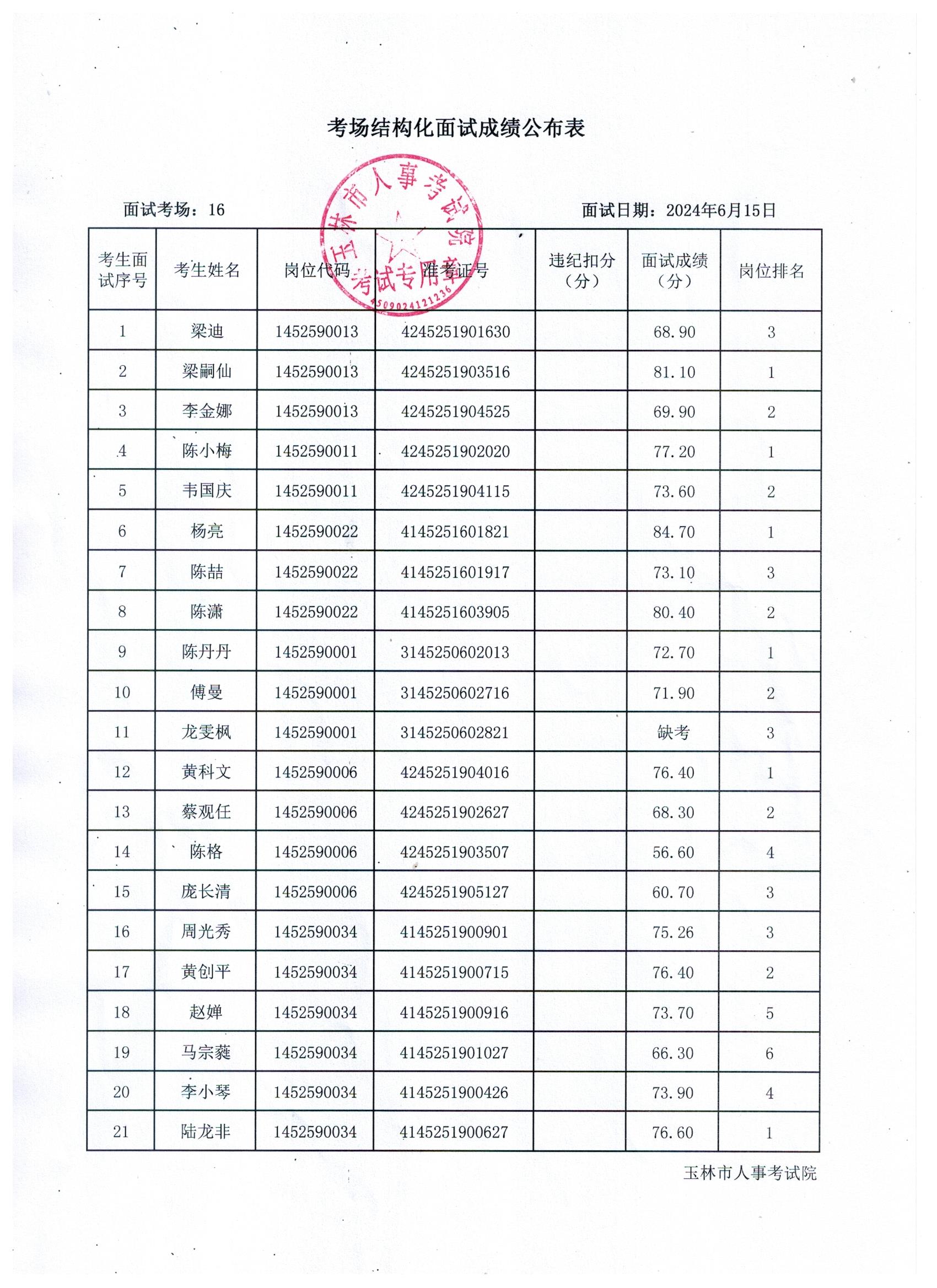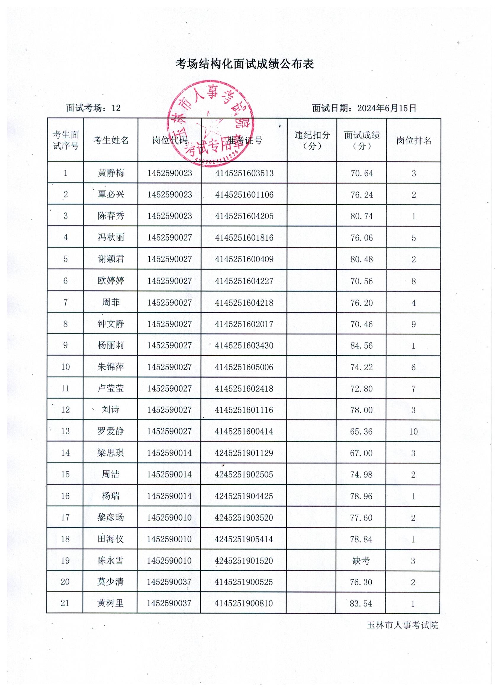 原文標(biāo)題:2024年玉林市直(含玉州區(qū)、福綿區(qū)、玉東新區(qū))事業(yè)單位公開招聘人員面試成績公布(6月15日)