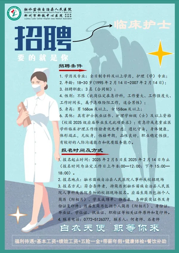 原文標題:2025年柳州融水苗族自治縣人民醫(yī)院招聘臨床護士3名
