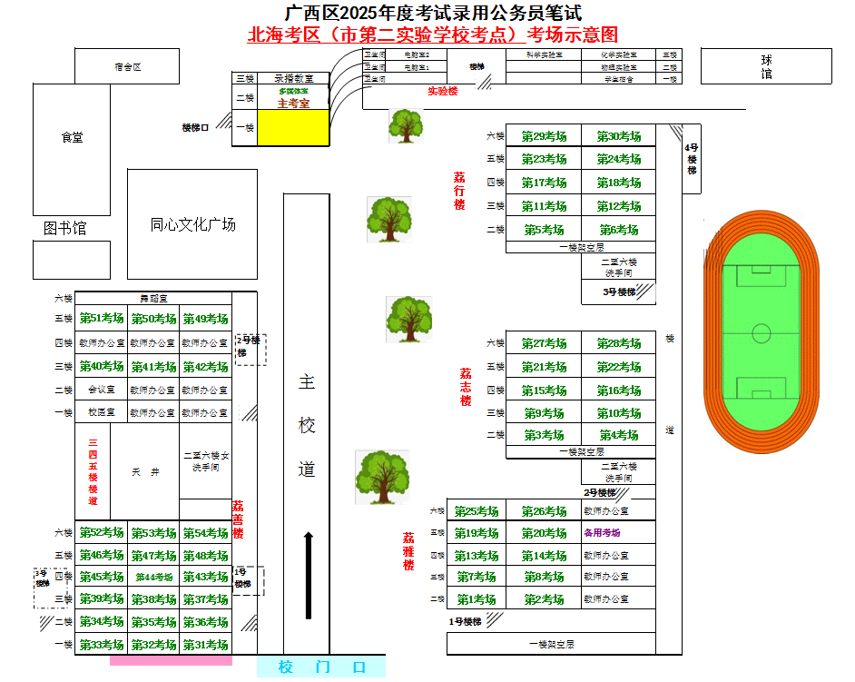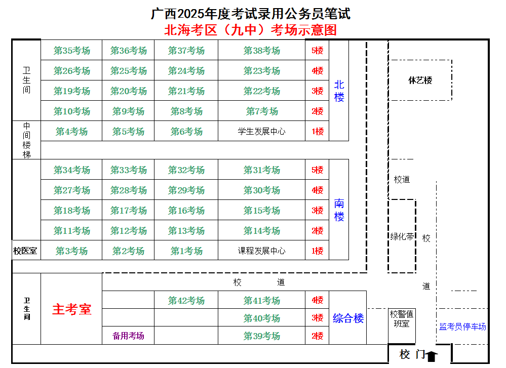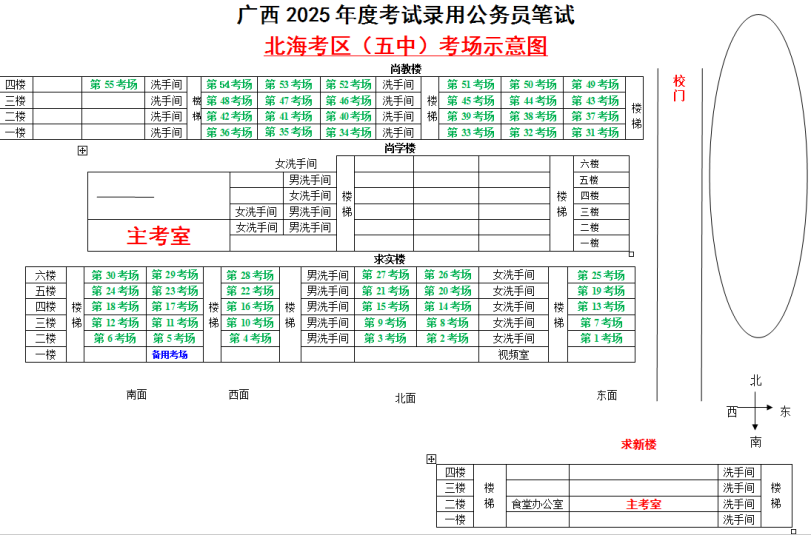 北??紖^(qū)共設(shè)置5個考點,具體考點考場布置分別如下: