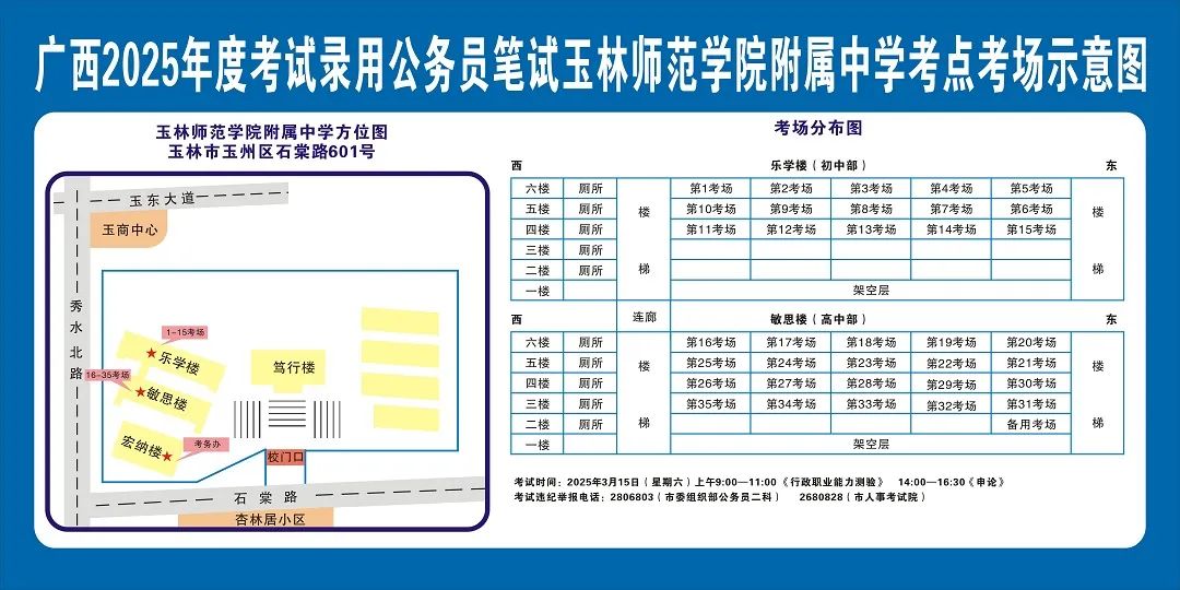 玉林市第一中學(xué)(運(yùn)嶺路校區(qū))考點(diǎn)11:00-12:00,16:30-17:30 在考點(diǎn)安排公交車和值勤人員,負(fù)責(zé)將考生接送到玉林汽車總站。