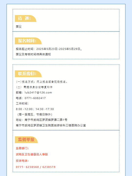 原文標題:南寧市武鳴區(qū)羅波鎮(zhèn)衛(wèi)生院公開招聘工作人員公告