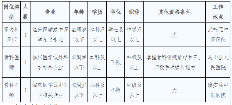 2.具備崗位所需的專(zhuān)業(yè)、職稱(chēng)及執(zhí)業(yè)醫(yī)師資格;