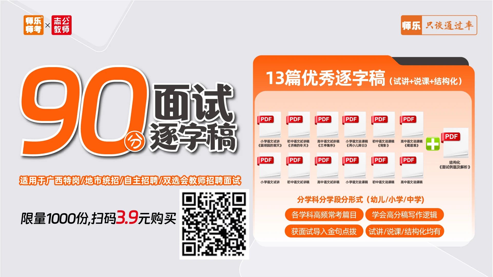 ??寫作邏輯+面試導(dǎo)入金句點撥 ?含13+篇試講+說課+結(jié)構(gòu)化 搶先體驗價:6.9元 ??14地市教招面試zhen題 了解試講/說課/結(jié)構(gòu)化形式及內(nèi)容 面試禮儀課 ??面試禮儀干貨介紹 正反面案例直觀對比 ??著裝、問候、儀態(tài)、言談禮儀等事項介紹 【師樂】廣西教招備考群 ??最新公告 備考資料 ??刷題打卡 考試交流