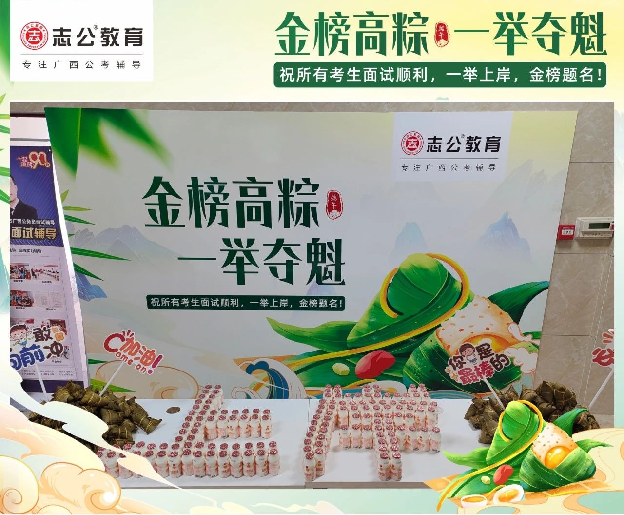 最后,再次祝愿大家端午節(jié)安康,六一兒童節(jié)快樂!愿志公教育每位員工在雙節(jié)的喜慶氛圍中,收獲滿滿,幸福常伴!也愿志公教育每位學(xué)員吃上粽子一舉高“粽”,實(shí)現(xiàn)自己的公職夢(mèng)想!