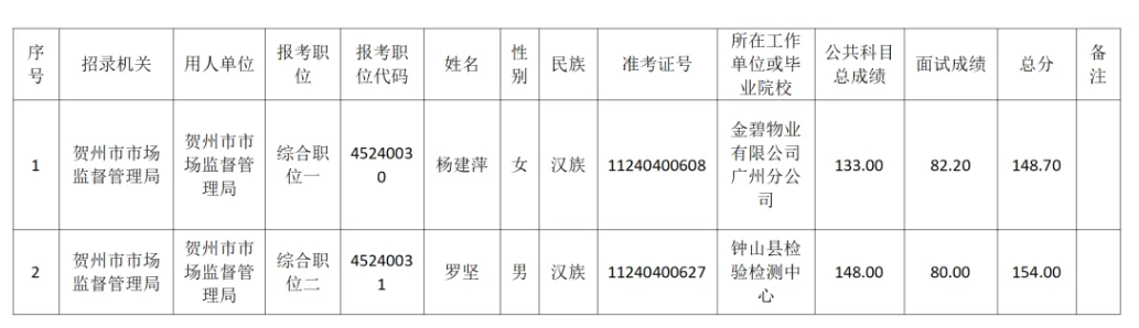 2 賀州市國(guó)資委2025年公開遴選公務(wù)員擬任用人員名單