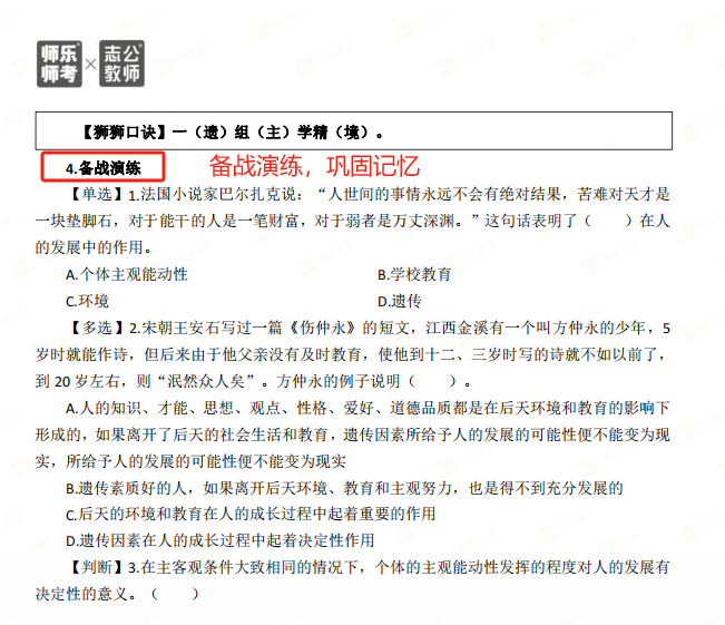 匹配考綱要求,精選50個核心考點:銘師組團精研,基于考綱收錄《教育學(xué)與教學(xué)法基礎(chǔ)知識》《教育心理學(xué)與德育工作基礎(chǔ)知識》核心考點,重點突出,幫助考生學(xué)習(xí)記憶。