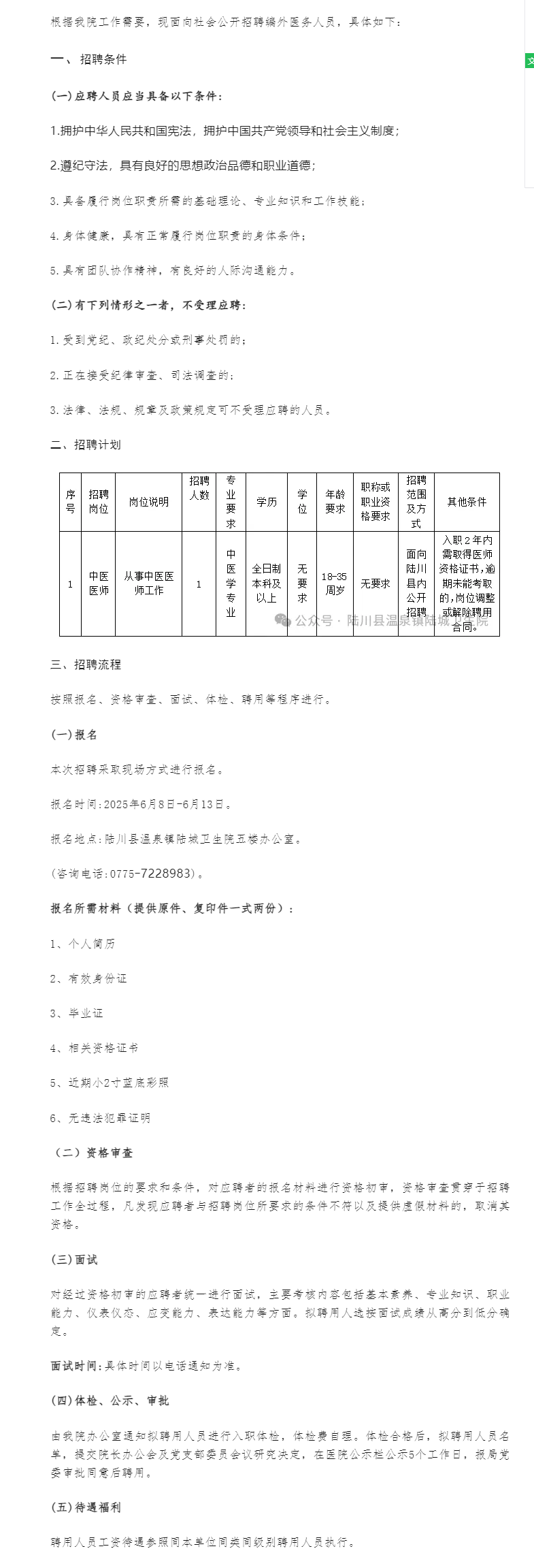 陸川縣溫泉鎮(zhèn)陸城衛(wèi)生院公開(kāi)招聘編外醫(yī)務(wù)人員1人