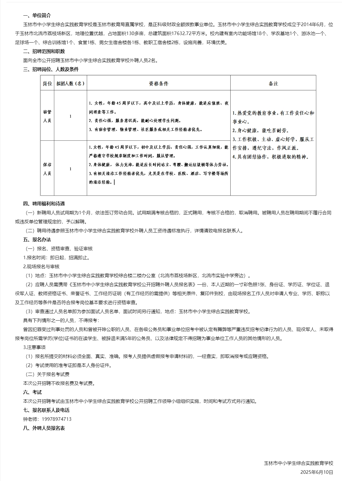 原文標(biāo)題:2025年玉林市中小學(xué)生綜合實(shí)踐教育學(xué)校公開(kāi)招聘外聘人員公告(五)