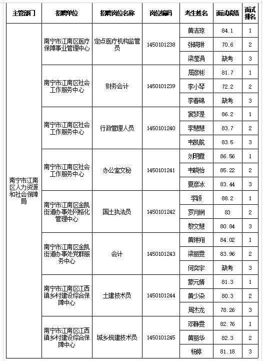 原文標(biāo)題:南寧市江南區(qū)人力資源和社會保障局2025年公開考試招聘事業(yè)單位工作人員面試成績表
