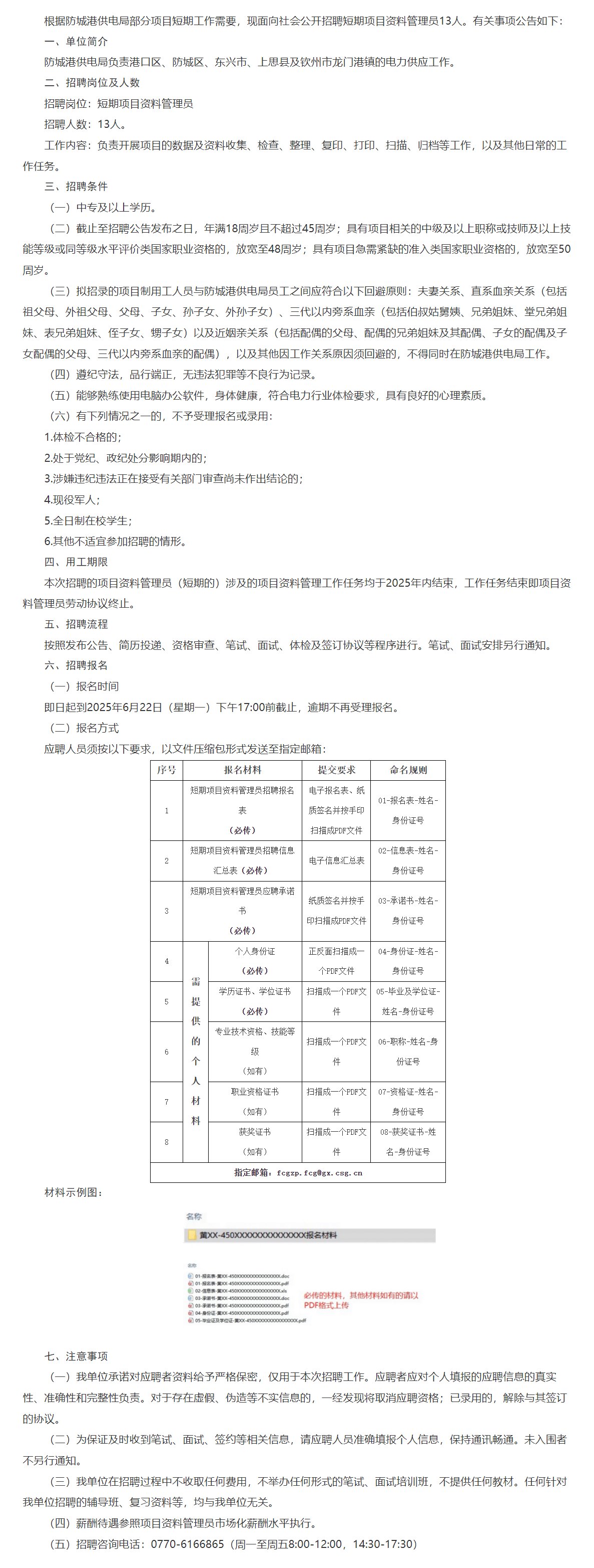 2025年防城港供電局短期項目資料管理員招聘13人