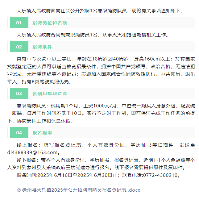 原文標(biāo)題:大樂鎮(zhèn)招聘消防隊員公告