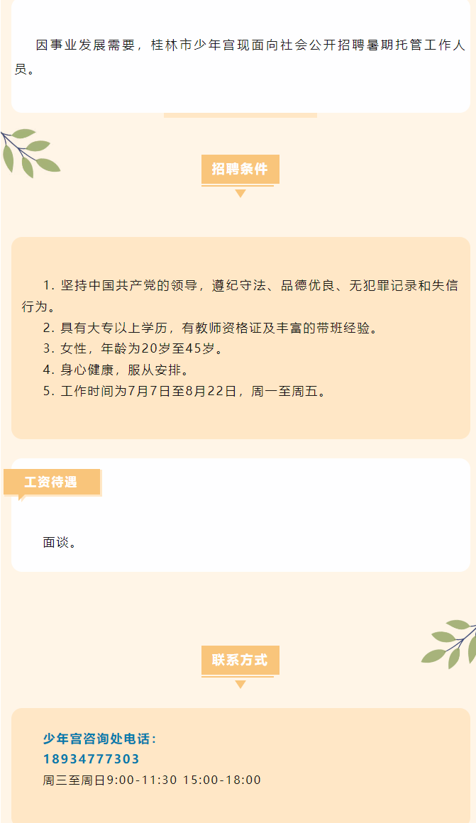 原文標(biāo)題:桂林市少年宮暑期托管營工作崗位招聘