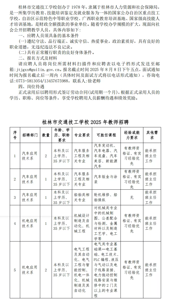 2025年桂林市交通技工學校教師招聘公告