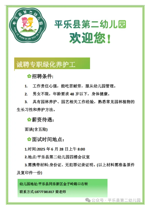 2025年平樂縣第二幼兒園招聘公告