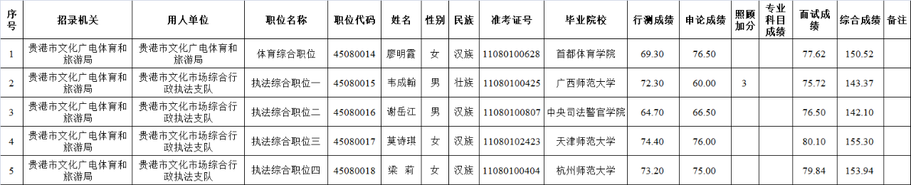 | 6.6 | 貴港市文化廣電體育和旅游局2025年度考試錄用公務員擬錄用人員名單 |