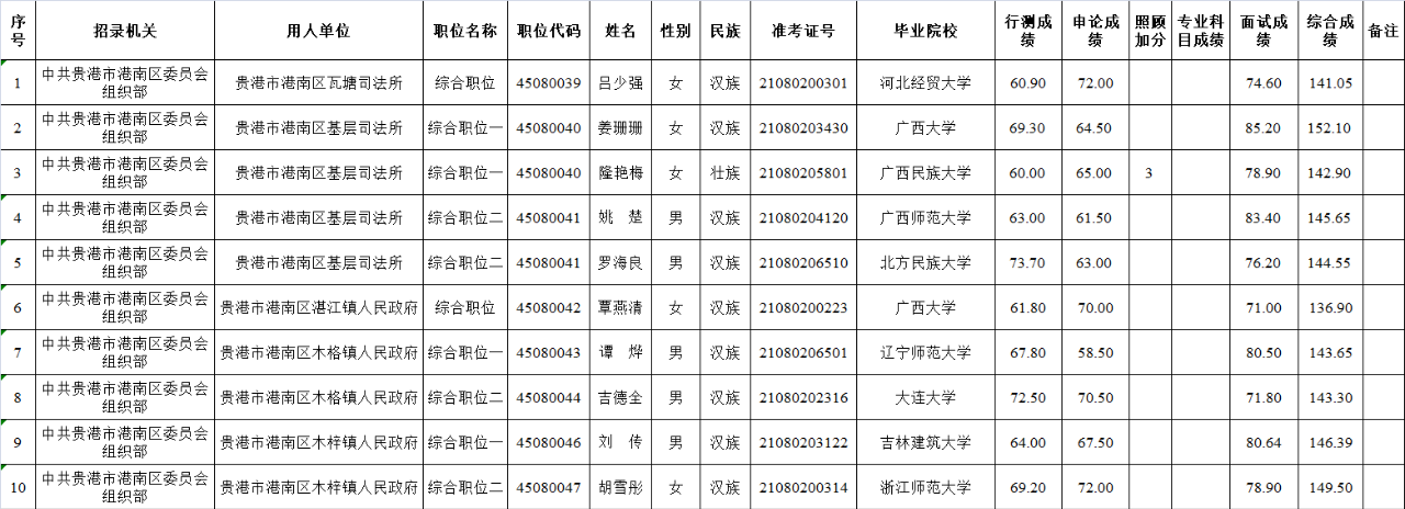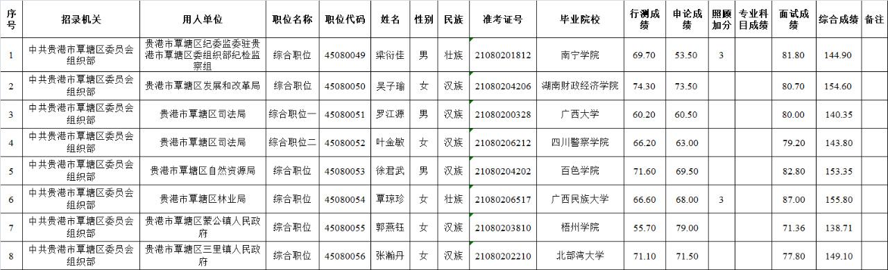 | 6.6 | 貴港市港南區(qū)2025年度考試錄用公務員擬錄用人員名單(一) |