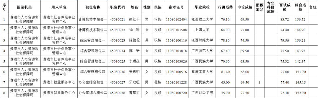 | 6.6 | 貴港市人力資源和社會保障局2025年度考試錄用公務員擬錄用人員名單 |