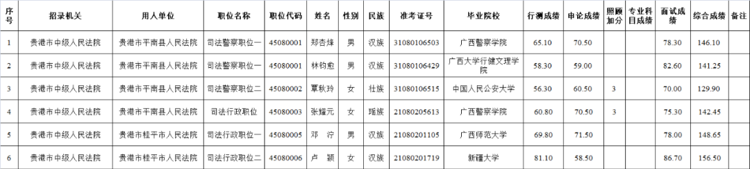 | 6.6 | 貴港中級人民法院2025年度考試錄用公務員擬錄用人員名單 |