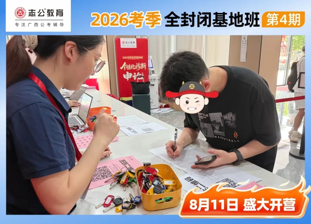 陽光明媚的一天,適合學(xué)習(xí),早上10點(diǎn),志公教育(中關(guān)村)全封閉基地的簽到區(qū)已經(jīng)布置妥當(dāng),志公的班主任們?cè)缭绲轿?,迎接每一位學(xué)員的到來。學(xué)員們滿懷期待,早早來到基地,為即將到來的學(xué)習(xí)之旅做好準(zhǔn)備。簽到臺(tái)前,大家有序排隊(duì),學(xué)員們依次領(lǐng)取到宿舍鑰匙、水卡等。班主任們細(xì)心核對(duì)信息,發(fā)放學(xué)員證和學(xué)習(xí)資料,確保每一位學(xué)員都能順利開啟接下來的學(xué)習(xí)生活。