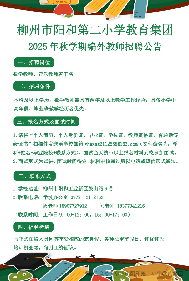 2025年秋學(xué)期柳州市陽(yáng)和第二小學(xué)教育集團(tuán)編外教師招聘若干人