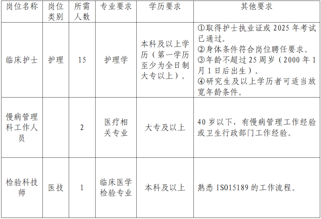 (一)報名。應(yīng)聘者需在2025年9月21日前將個人電子簡歷及應(yīng)聘所需佐證材料,包括但不限于畢業(yè)證(第一學歷和最高學歷)、學位證、執(zhí)業(yè)證(考試成績)、職稱證、進修結(jié)業(yè)證、??谱o士培訓合格證、執(zhí)業(yè)資格考試成績單等打包發(fā)送至rsk7836669@163.com郵箱,報名材料以“姓名+專業(yè)+衛(wèi)技招聘”名字命名。
