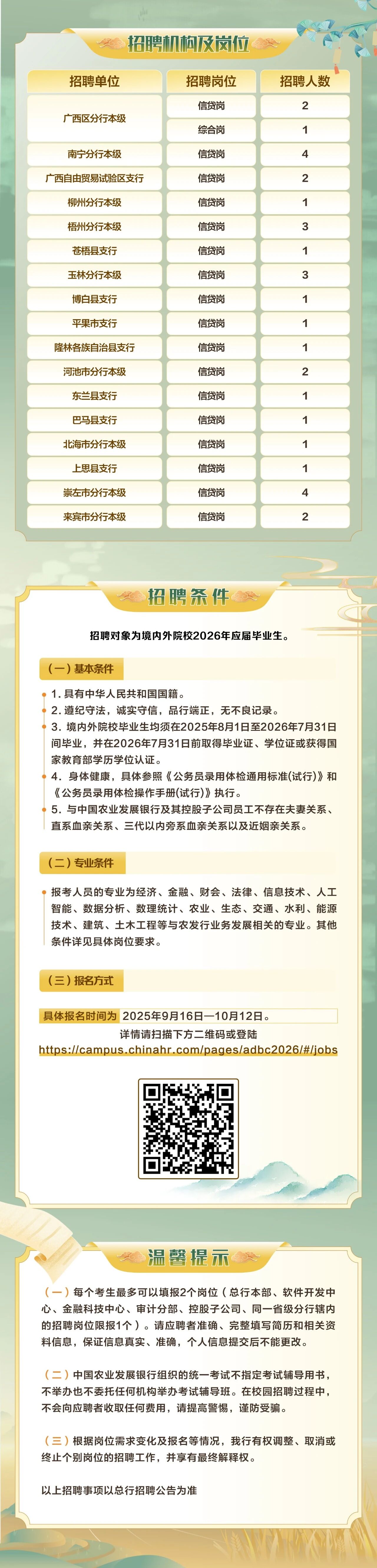 原文標題:中國農業(yè)發(fā)展銀行廣西區(qū)分行2026年校園招聘正式啟動