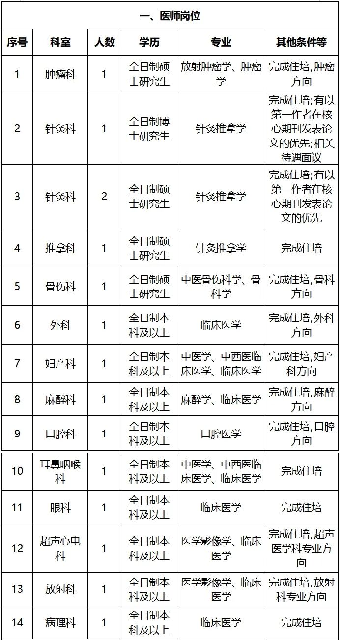注:2026年應(yīng)屆畢業(yè)生學(xué)歷學(xué)位證必須在2026年7月前取得;要求完成住培的,住院醫(yī)師規(guī)范化培訓(xùn)合格證必須在入職前取得(2026年完成住培的入職前必須通過國家組織的住院醫(yī)師規(guī)范化考試)。