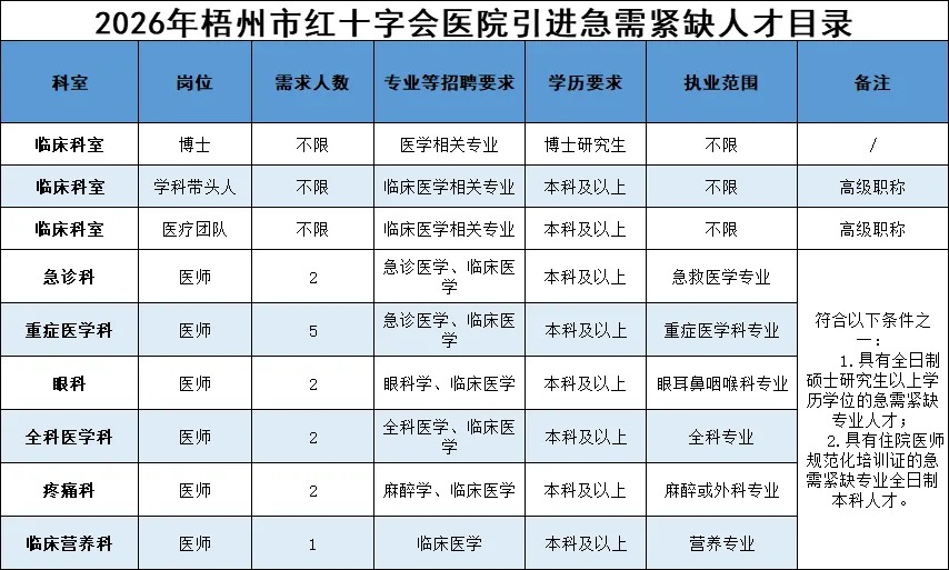 梧州市中西醫(yī)結合醫(yī)院2026年人才招聘公告