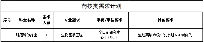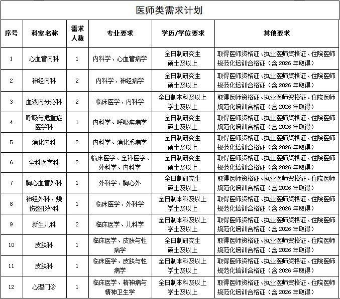 為進一步完善現(xiàn)有人才隊伍,促進醫(yī)院學科發(fā)展,提升醫(yī)院綜合實力,因業(yè)務(wù)發(fā)展需要,現(xiàn)面向社會進行公開招聘,具體招聘崗位如下: