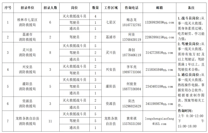 為進一步加強全市消防救援力量建設,提升綜合應急救援能力,按照公平公正、平等自愿、競爭擇優(yōu)的原則,桂林市消防救援局面向社會公開招錄政府專職消防員,現(xiàn)將有關事項公告如下: