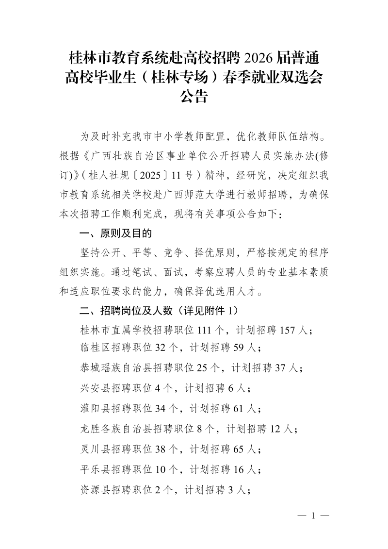 2026年桂林市教育系統(tǒng)赴高校招聘普通高校畢業(yè)生(桂林專場)春季就業(yè)雙選會招聘426人